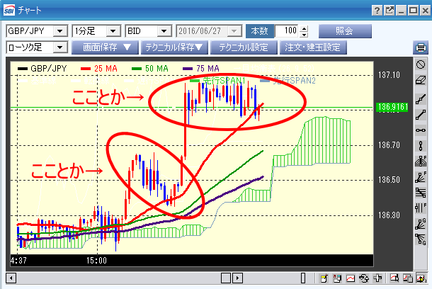 高値を確認したのち、戻ったところを高値で売りたたきます。