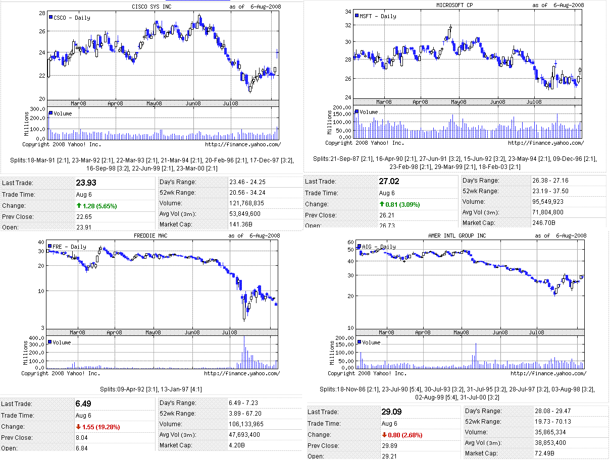 為替について。ドイツの6月製造業受注が予想を大きく下回ったことからユーロが売られ、日本も昨日発表された景気動向指数で内閣府は景気の基調判断を悪化とし景気後退の色が濃くなったことから円が売られ、結果としてドル高になりました。ドルが上がるのは、米経済の悪化が最初に顕在化し、これまでにドルはある程度売られていたためでしょう。ここ数か月のマクロ経済指標の結果は、ユーロ圏も日本もやっぱりダメになっていくのね・・・って感じです。