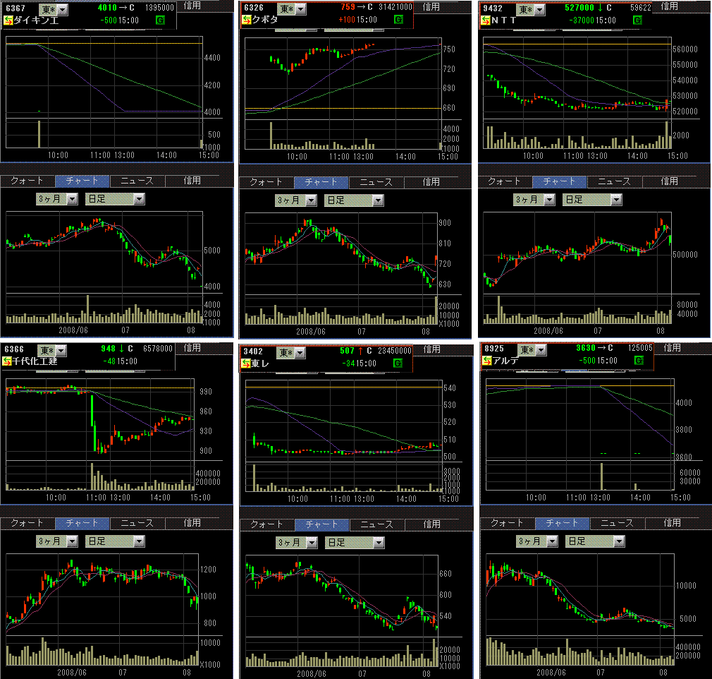 昨日引け後には原弘産も下方修正を発表。両銘柄ともS安。不動産関連はほんと厳しい。手だし無用ですね。