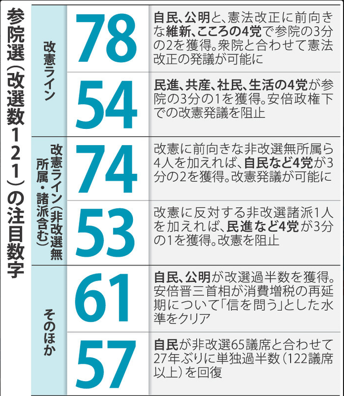 74議席まで下がる。このハードルを越えれば、国会での改憲論議が
