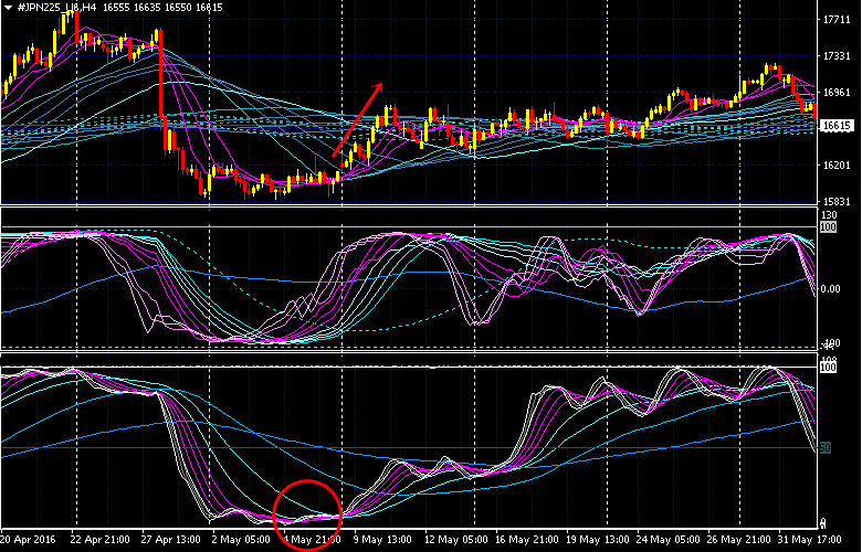 メタトレーダー JPN225 CFD 4時間足チャート