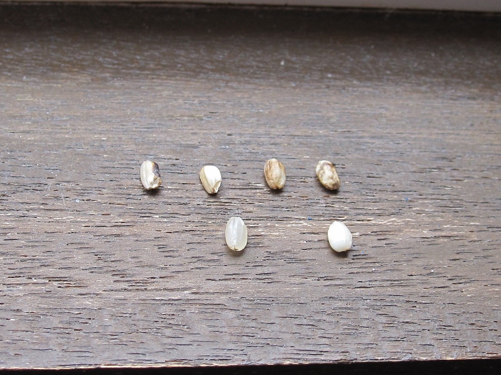また、米粒(玄米)の黒くなって虫食いのようになったものを彼らは食べないのだろう。