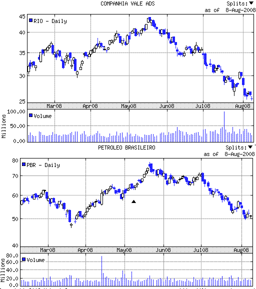 画像2は、ブラジルを代表する資源株である、ヴァーレ(鉄鉱石・非鉄)、ペトロブラス(石油)のチャートです。ヴァーレは好決算を発表しましたが売られました。