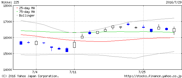 7月21日に月間最高値16,938.96をつけた後は一進一退、