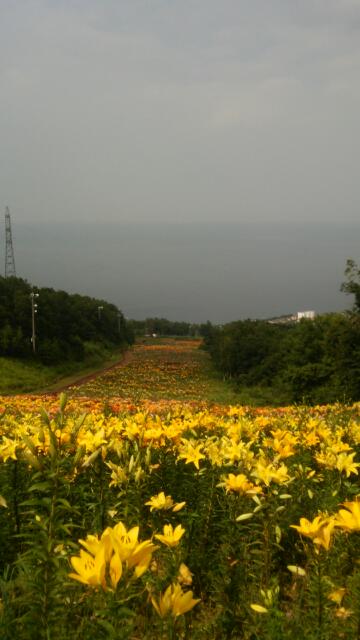 ちょっと曇っているようですがず~と下までユリ畑のようですね![]()