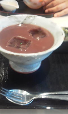 友人は杏蜜まめを頼んで、私は冷やししるこを頼んで食べました。