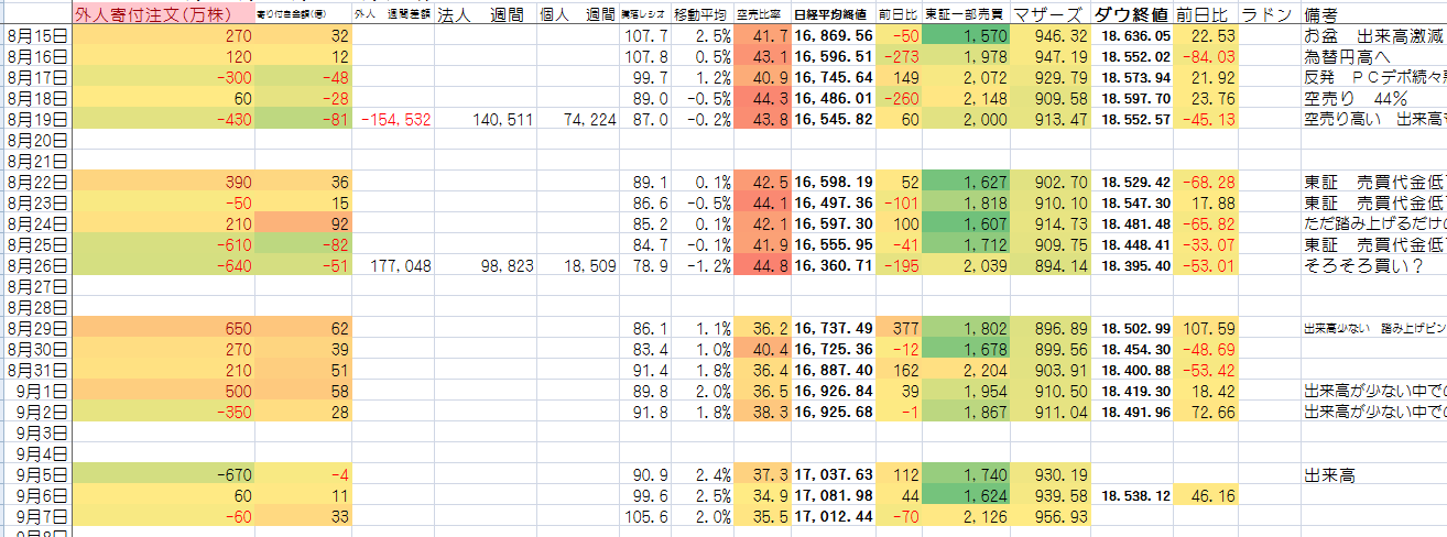 今日の数値を見ていると 特記事項は なんか知らんが 日経がくすぶっている分新興が強いかな。
