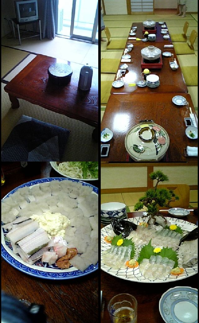 料理はふぐちりとひらめの刺身。≠( ̄~ ̄ )モグモグモグモグモグ