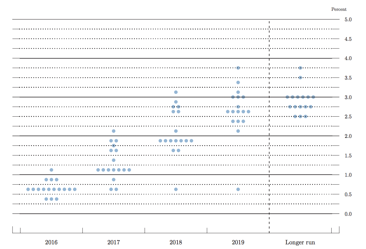 また、注目されたドットチャート(利上げ見通し)については、16年は0.25%と6月時点の2回から1回に減少し、17年も3回から2回といった具合に想定は減っています。