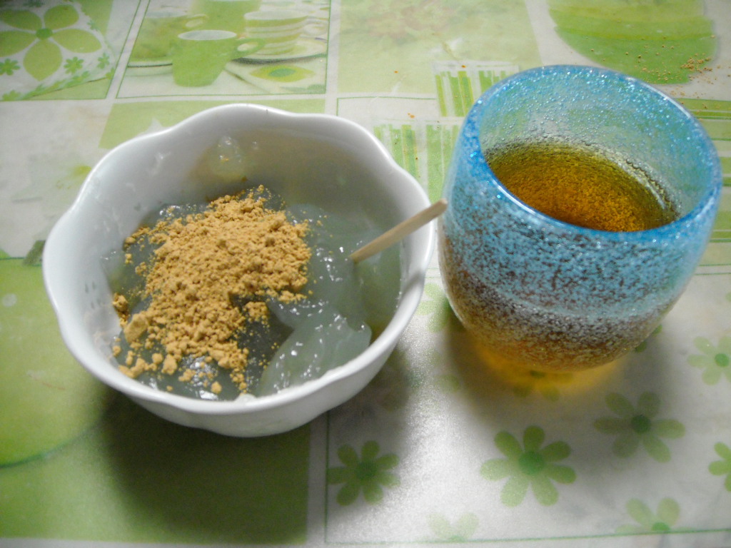 右の写真は美味しそうな「わらび餅」ですね!