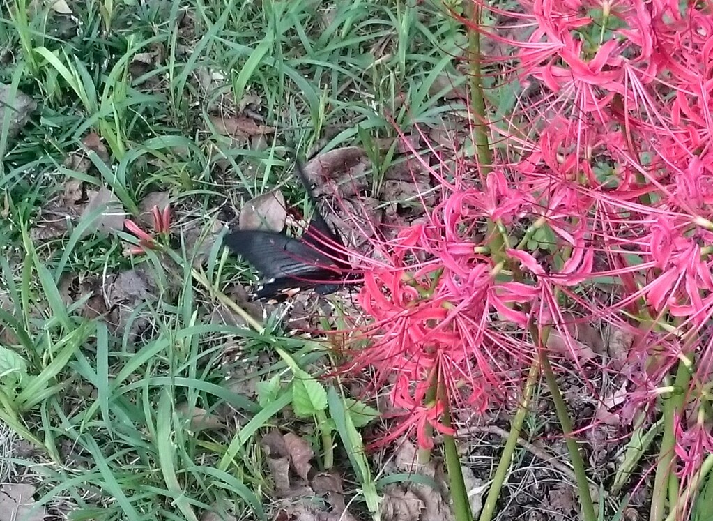 私が先日見たヒガンバナにも普通のアゲハが飛んできて蜜を吸っていました。