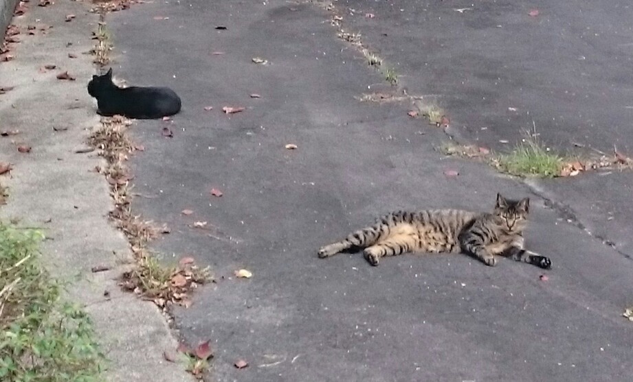 こんにちは。そちらの野良猫は人慣れしているのですね。