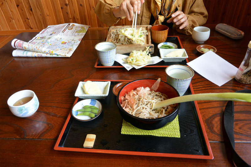 っで、大内ダムから下って大内宿の直上にあるそば屋の大きな無料駐車場に留めたのですが、帰りにどうせどこで食べても同じだからと思って混雑を嫌い、そこまで戻ってお店に入ったら、なんと12時だというのにお客は2人だけ、、、おらとキャシーの2りだけ┗(・o・)┛どっひゃ~!!