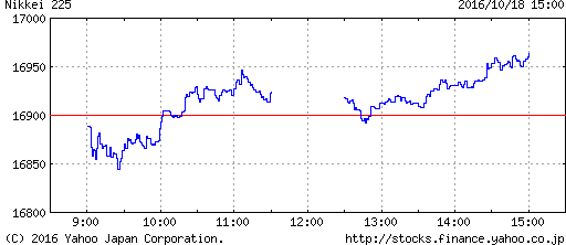 月曜日の日経は、16,900.12 前日比+43.75(+0.26%)