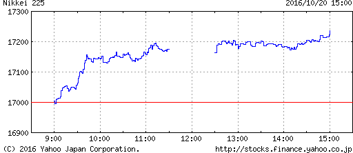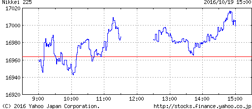 水曜日の日経は、16,998.91前日比+35.30(+0.21%)