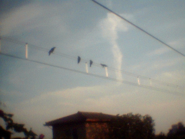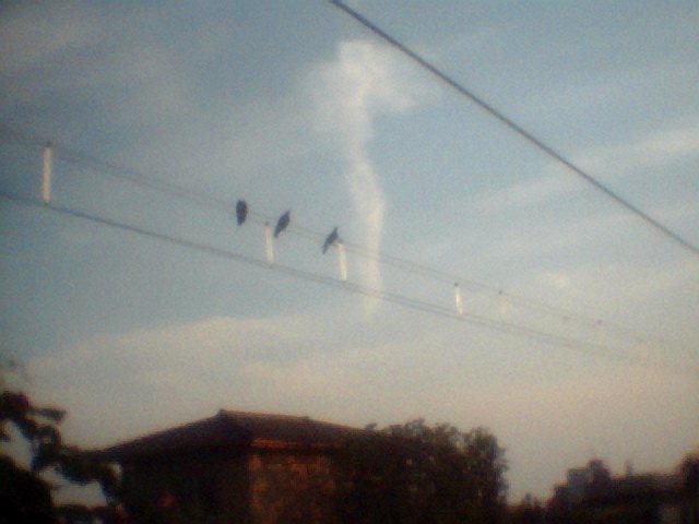なぜだか、カラスが 三羽 目の前の電線に そして、