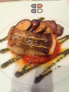 今日のお魚はスズキ。バジルとトマトのソースです。