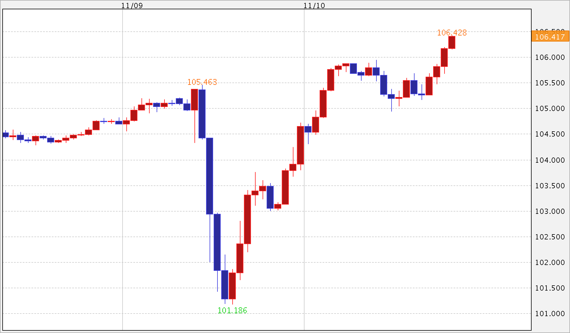 トランプ・ショックとは何だったのか・・・。バークレイズさんは株価が11〜13%下がるって言ってましたよね・・・ねぇ!というわけで、あれだけ不確実性云々と言っていた市場は何もかも綺麗さっぱり忘れ、株高&ドル高の展開となっていますヾ(ㆆωㆆ )ォィォィ…