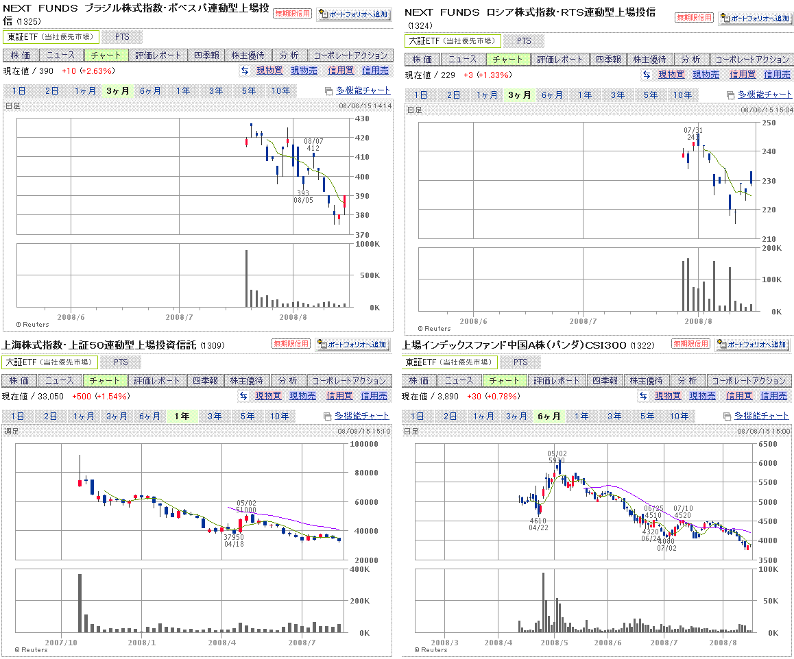 ブラジルETF、上場してたんですね。気づきませんでした。上海ETFといい、東証にETFが上場されるのは死亡フラグですね・・・。ETFが上場されるってことはニーズがそれだけあるってことで、ニーズがあるということは大衆が群がっているってことで・・・。