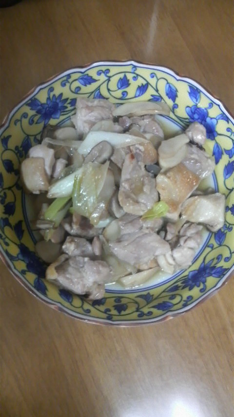 で、今日はまたシンプル料理で恐縮ながら、鶏肉とネギ・エリンギのガーリック炒めでござる。スライスしたニンニクを前もってオリーブ油に浸けておき、ひと口大に切った鶏もも肉を皮側から焼いていきまする。写真はやや失敗作で、もう少し鶏皮に焦げ目をつけた方が美味しくできまする。