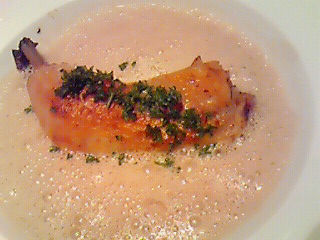 この鶏は骨つきなのですが、暖かなカプチーノ仕立てのようなスープの中に入っていて、ナイフ、フォーク、スプーンが出てきました。