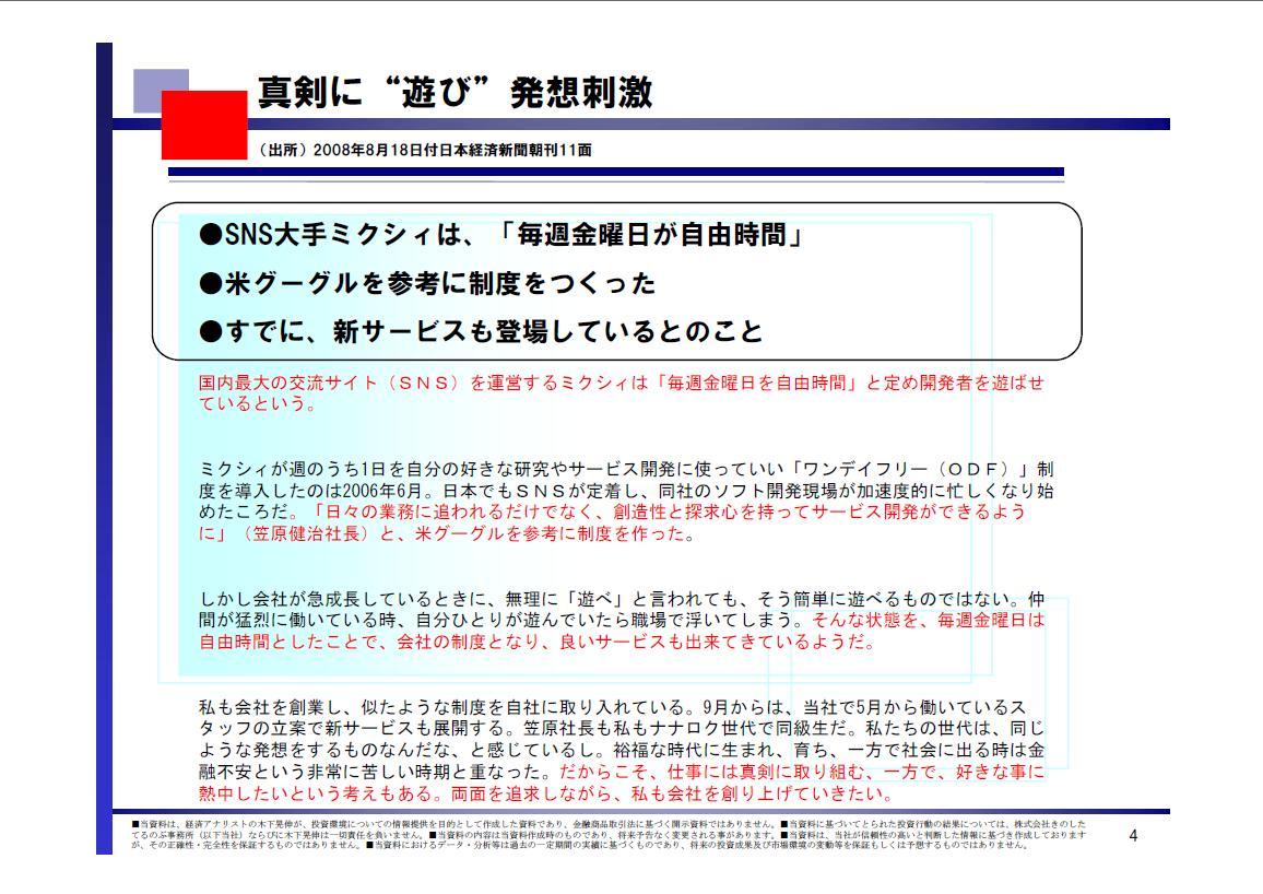 ●SNS大手ミクシィは、「毎週金曜日が自由時間」