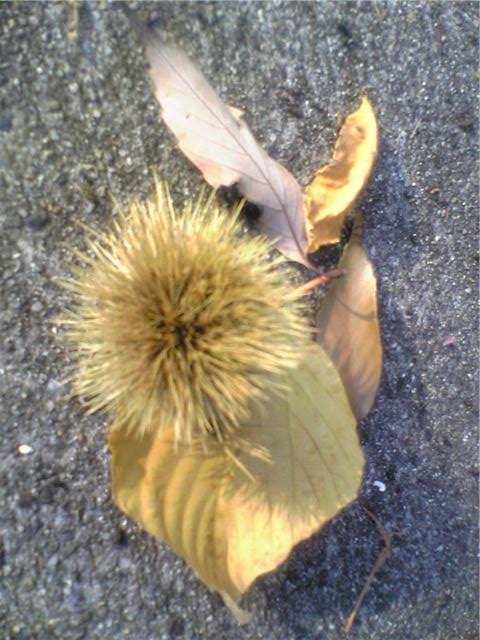 栗のイガです。風に吹かれて落ちてきたのでしょう。