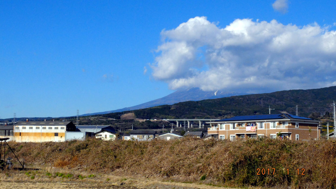 昨日犬の散歩で撮影場所を通りましたが雲で富士山見えませんでした。
