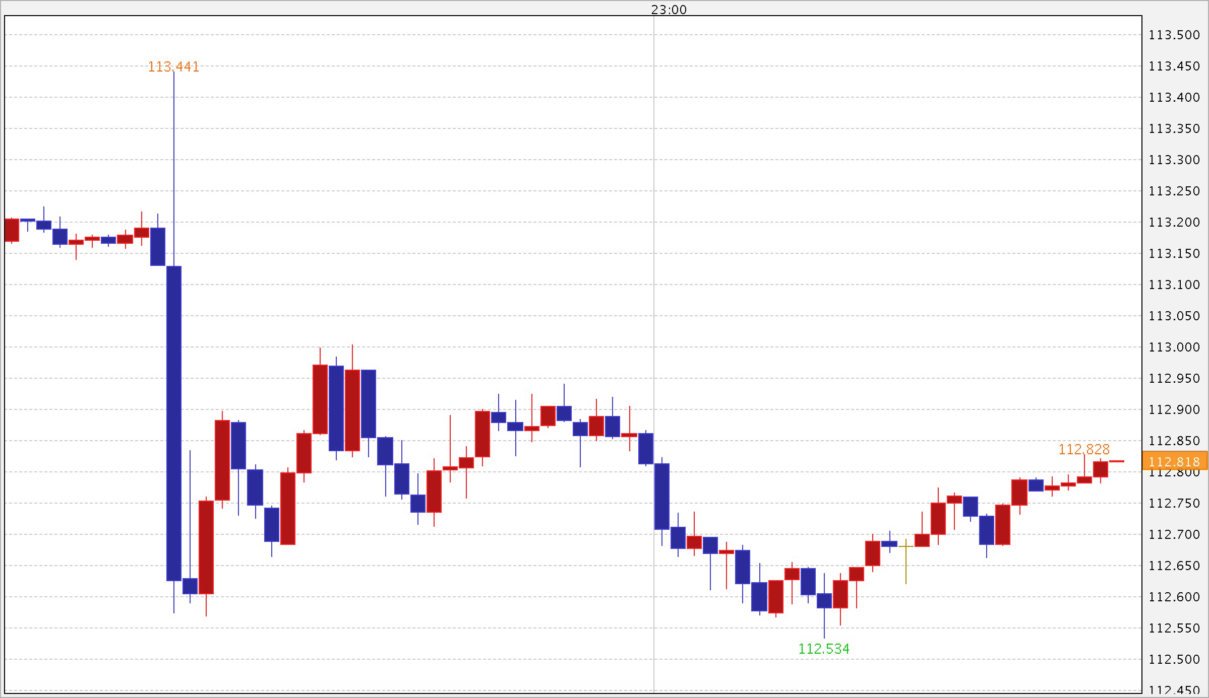 ↑発表直後のドル円チャート。初動こそドル高でしたが即反落。