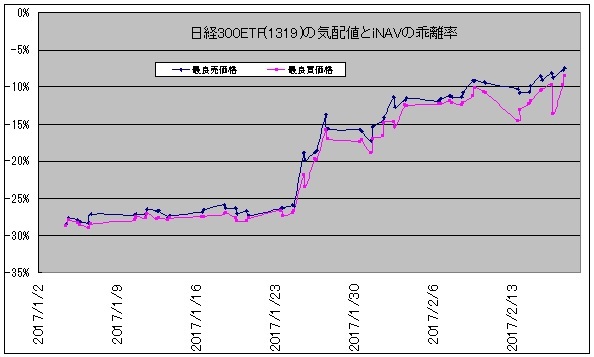 最良売買気配値とiNAVとの乖離率が、約款変更前の-30%弱から、直近の-8%くらいに水準訂正されました。まだまだ、割安です。