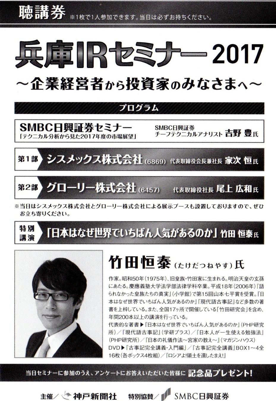 「兵庫IRセミナー2017」(2月18日)行って参りました。