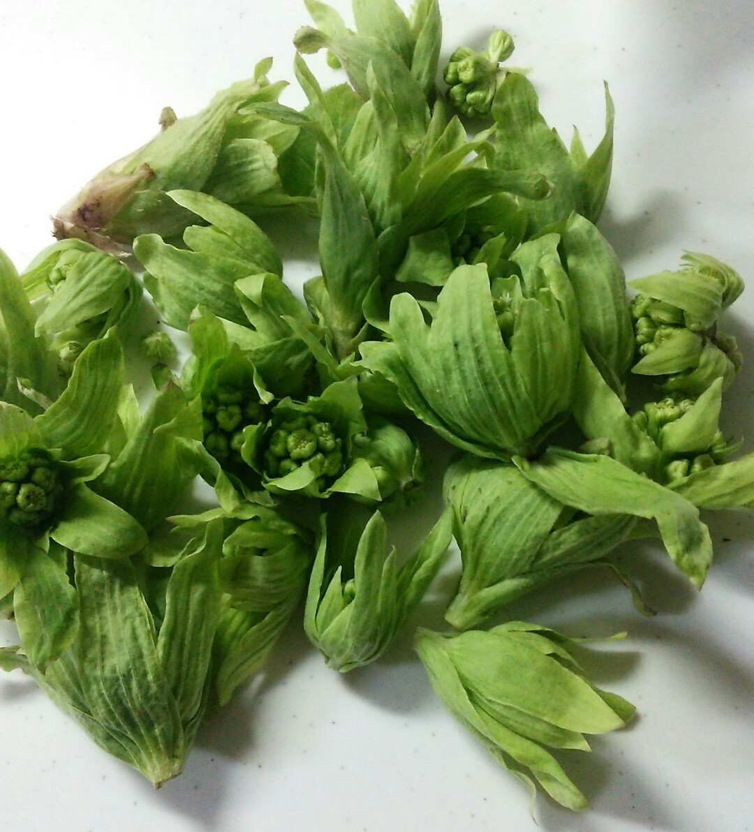 できるだけ葉っぱが開く前のを収穫します。収穫が少ない時は葉っぱが開いたのでも枝分かれしている先の葉の開いていない部分でも食べる事はできます。