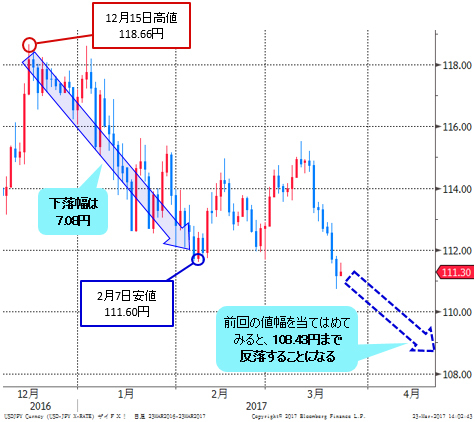 値幅よりも時間軸から考えると、今月(3月)末までは、まだ米ドル/円は下値を模索する動きが続く公算が高いのではないでしょうか?