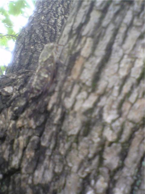 どこにいるかな?むしもどこにいるかわかりません。写真も3回目にあたりです。ツクツクボウシですが皮に隠れてわかりません。泣き声だけが聞こえます。