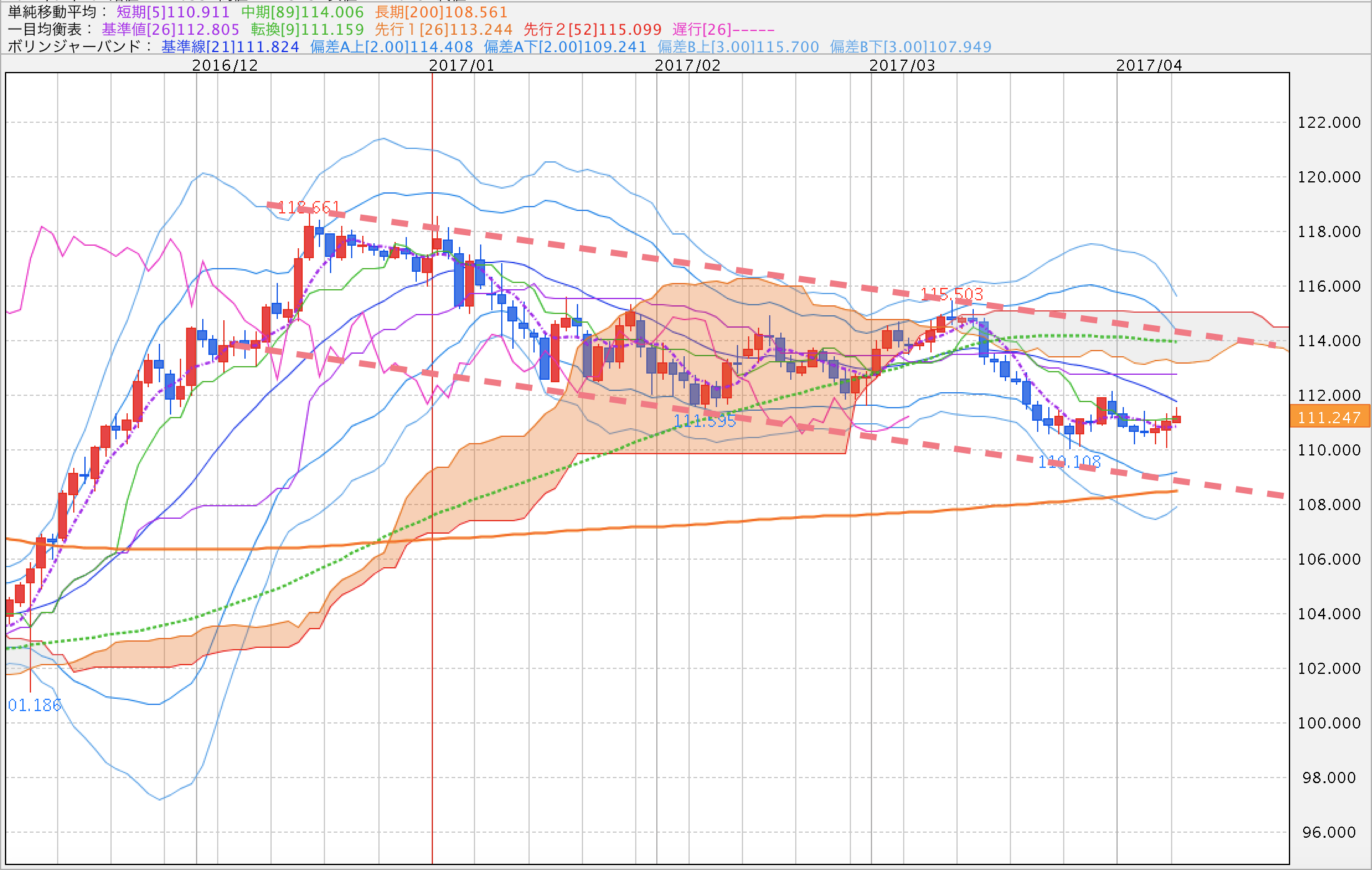 悩ましい値動きは継続中でしょうか。特にドル円に関しては、短期はともかくとして中長期的な展望を描くのが難しくなってしまった印象です(-ω-;)ウーン