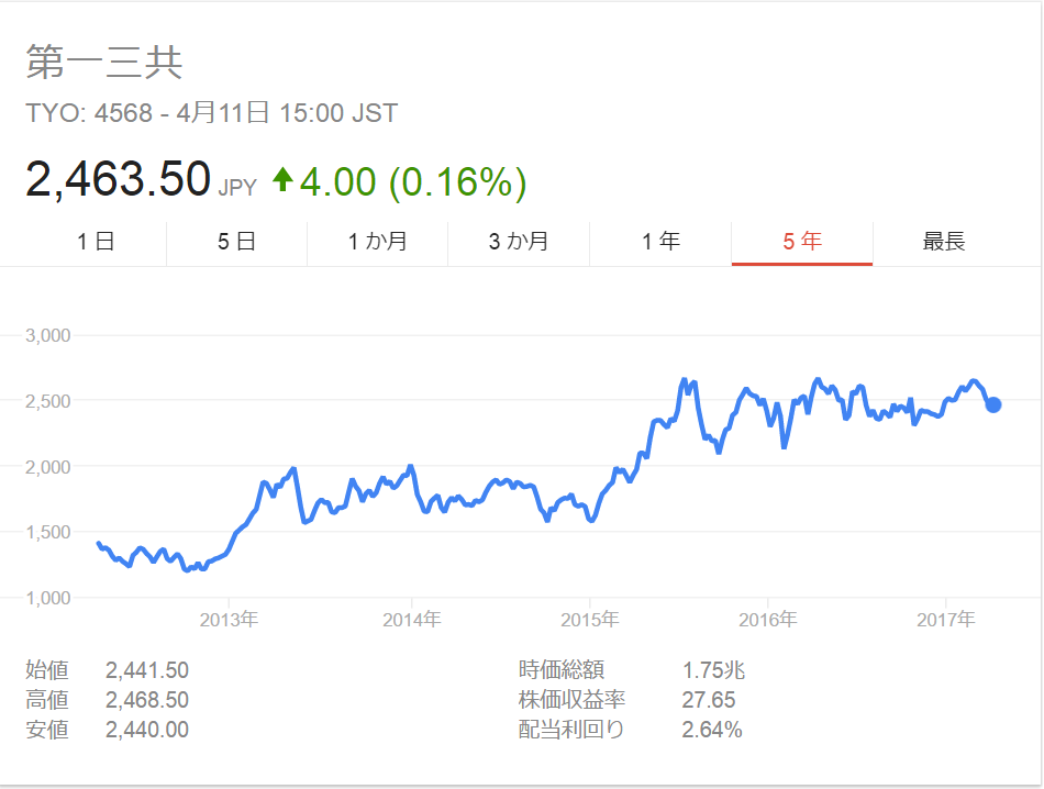 4568第一三共 2463.2円(①2586②2660/2267円)M