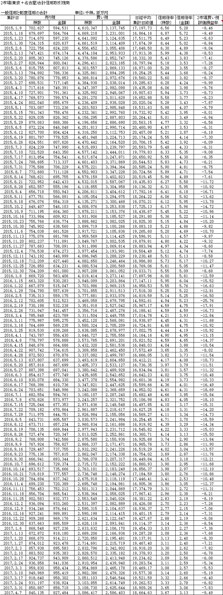 4週連続で信用評価損益率が悪化しているのが気になるところ