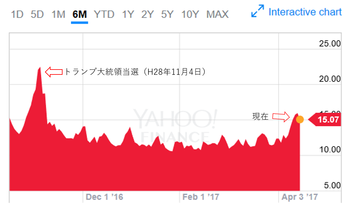 ここ最近は11~12で推移していたところ15付近まで上昇しています。