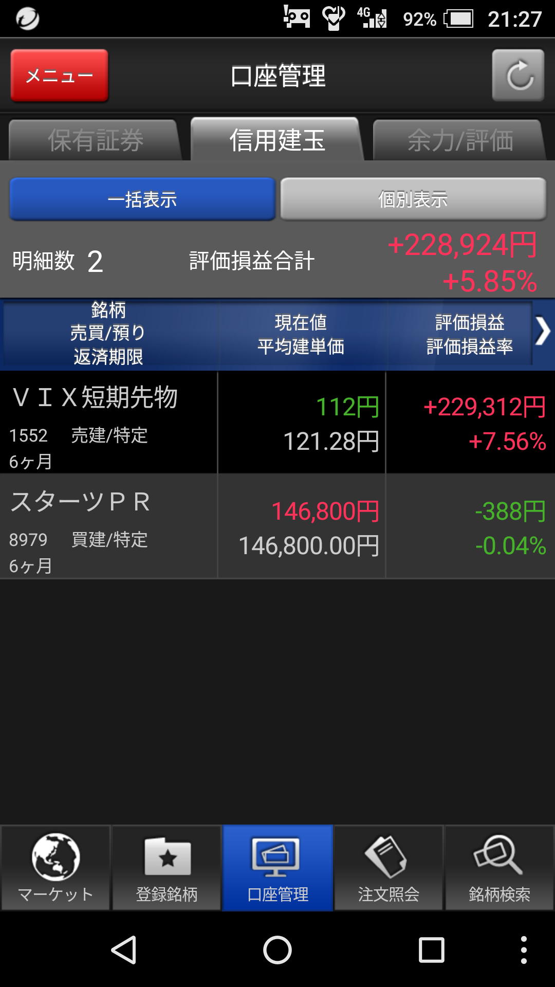 現在「1552 VIX短期先物」を25,000株空売りしていますが、