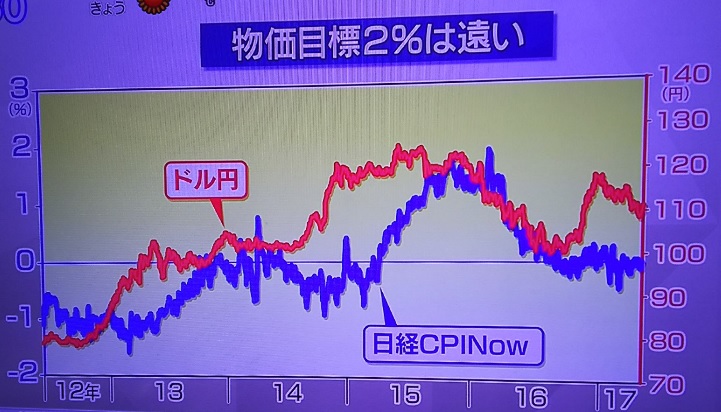 一方、日本の物価目標2%の達成は程遠いみたいです。