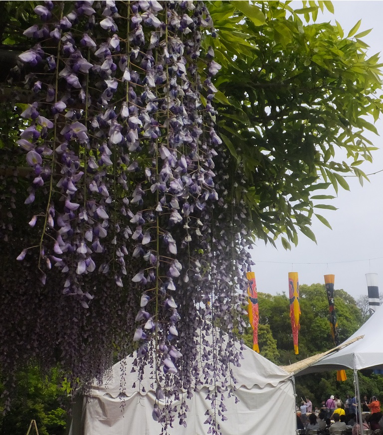 周りをなんじゃもんじゃの花が囲う庭園も、藤もきれいに、