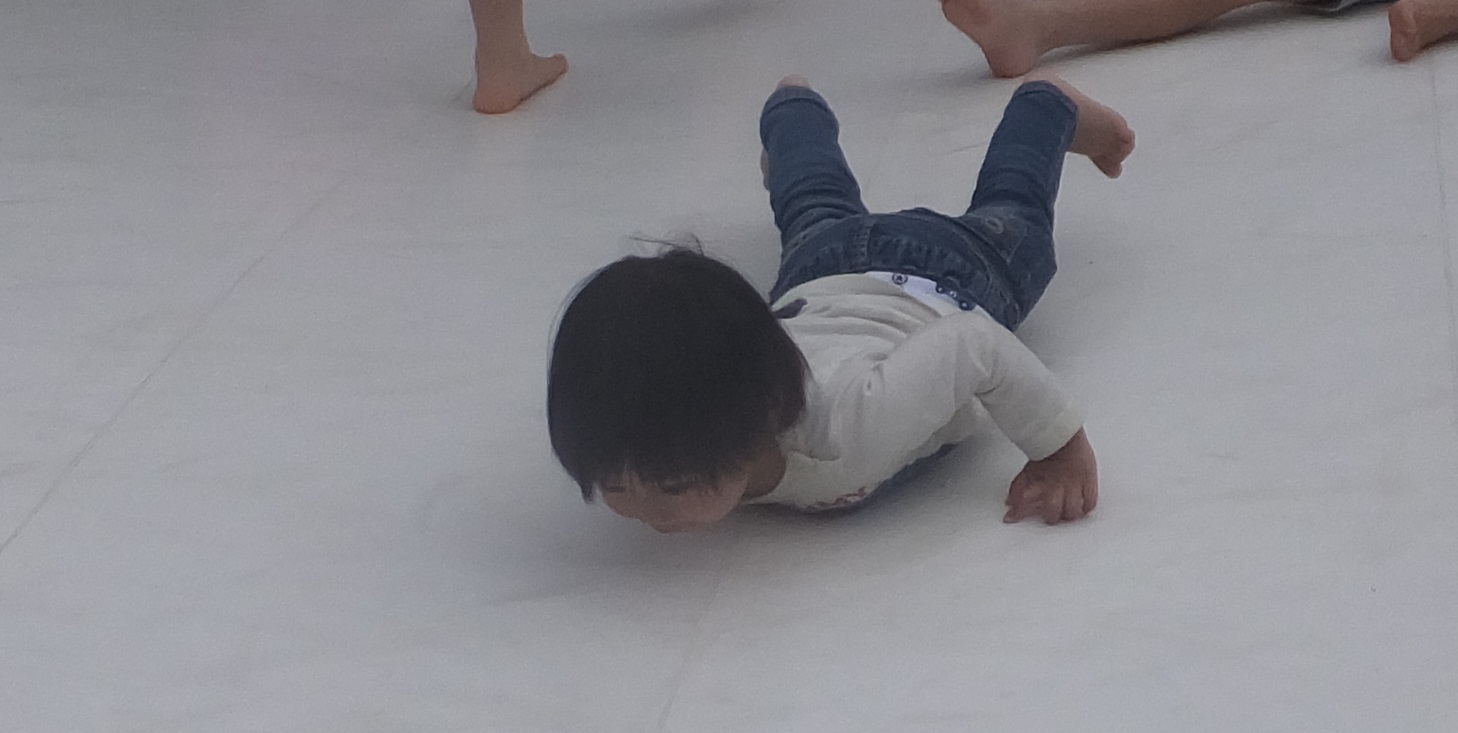 大きな遊具のあるメインビルの中でかけっこ。