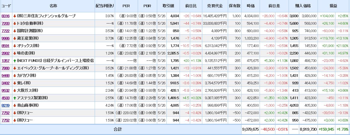 現物12銘柄、指数ETF1銘柄、信用売り1銘柄。