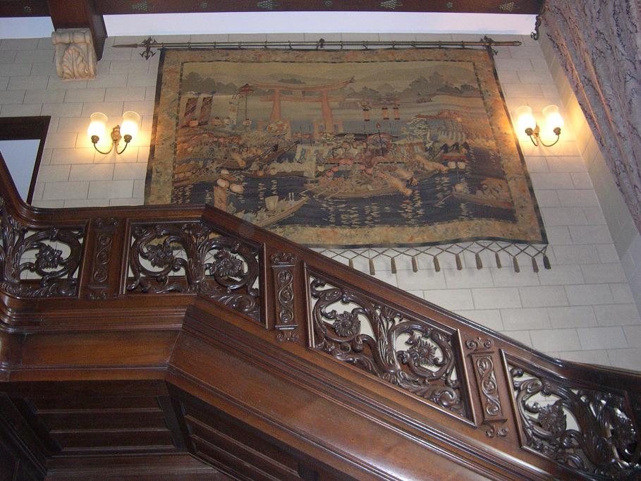 写真中央:タペストリーは「宮島」。