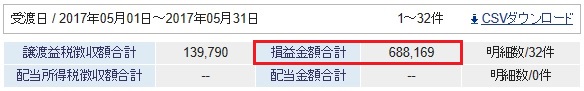 4月末の「フランス大統領選挙」の時と、5月中旬の「トランプ大統領ロシアゲート疑惑」の時にVIX指数は大きく上昇していましたので、「1552 VIX短期先物」の空売りと「2049 VIXインバースETN」の買いによる収益が大きかったです。