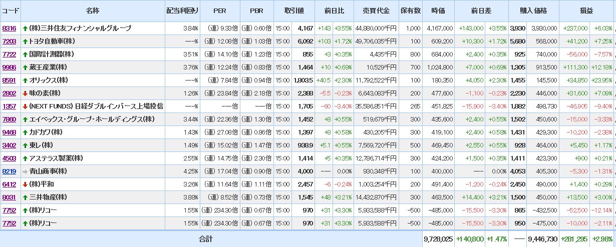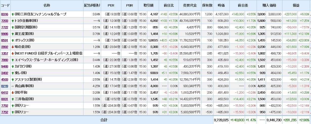 前日比、+1.6%は、仮に10百万円株投資していたら、16万円の利益。