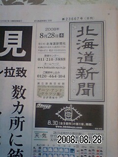 日経、見ましたが載ってませんでした。サンスポも載ってませんでした。北海道新聞はコラボだったのでしょうか?