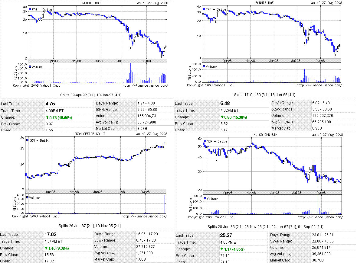 7月耐久財受注が堅調だったことから、米株は上昇しました。米政府によるGSEの救済は差し迫っていないとの見方から、ファニーメイ、フレディマックは大幅続伸。ハリケーンの石油関連施設への影響が懸念され原油価格は続伸しました。