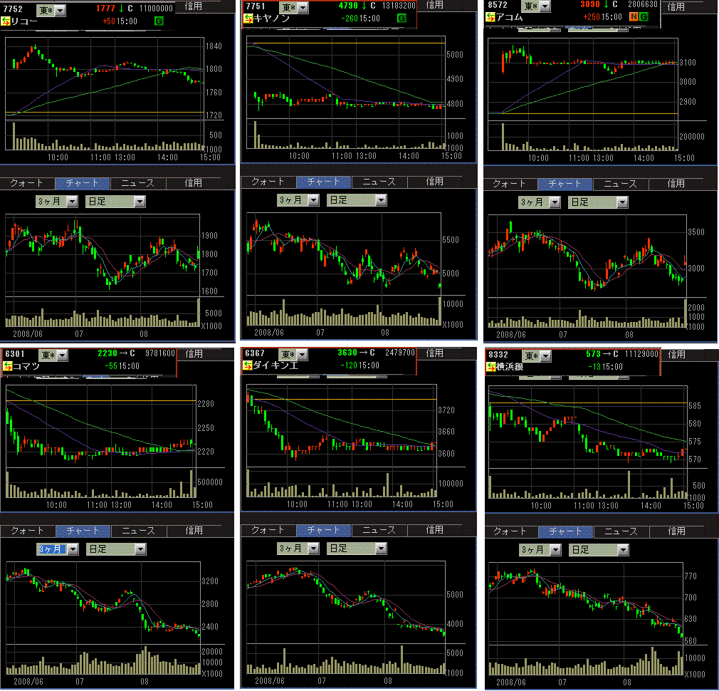 東証一部出来高は13.8億株、売買代金は1.45兆円で昨日よりは少し増えました。値上がり銘柄数は613、値下がり銘柄数は972と売られている銘柄の方が多かったです。機械や地銀など、ズルズルと売られ続ける銘柄が目立ちます。そんなに一気に業績が悪化するのかな・・・とも思いますが、景気敏感株は避けた方が無難でしょうね。株価の先行性は、無視できません。食品、医薬品などのディフェンシブは昨日に引き続き買われていました。