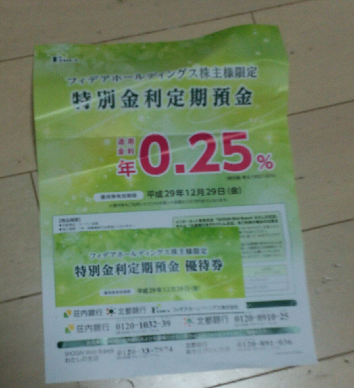 フィデアから優待券いただき~(* ̄∇ ̄)ノ